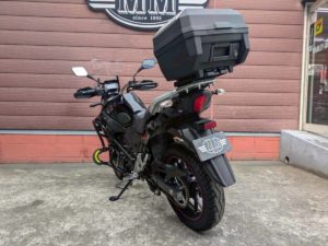 さらに、実用性を高める装備も充実。エンジンガード装着で安心感があり、リアトップケース付きで積載力も確保。グリップヒーターも装備しているため、寒い季節のツーリングでも快適に走行できます。